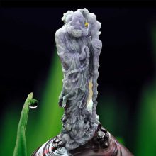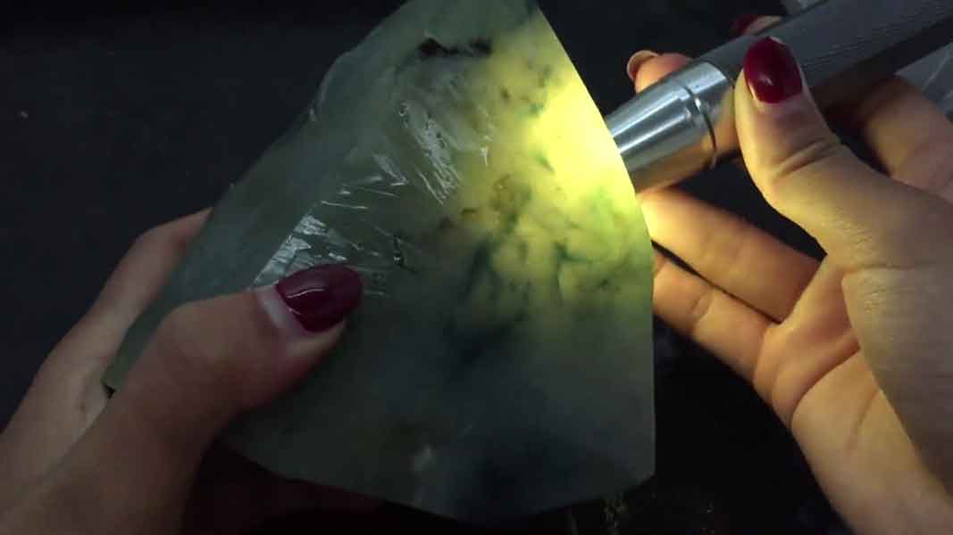 翡翠表皮隐约可见的一些象干了的苔鲜一样的团块、斑块、条带状物,称为松花,这是翡翠内部的绿在皮壳上的反映,是翡翠原料上的绿风化后渐渐失色留下的痕迹